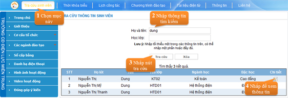 - Tên tài khoản chính là mã số sinh viên, để biết tên tài khoản, sinh viên chọn mục Tra cứu sinh viên trên menu ngang và làm theo hướng dẫn như hình sau.