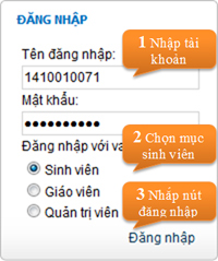- Nhập tên tài khoản và mật khẩu, chọn mục Sinh viên và nhắp vào nút Đăng nhập để đăng nhập hệ thống.